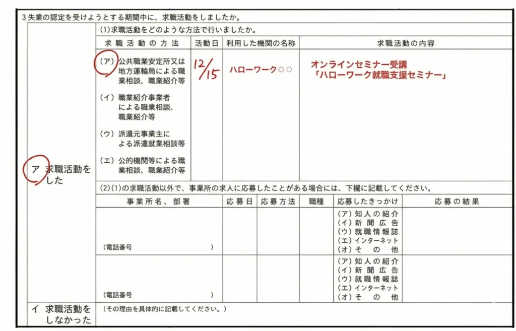 実際の失業認定申告書を例に、