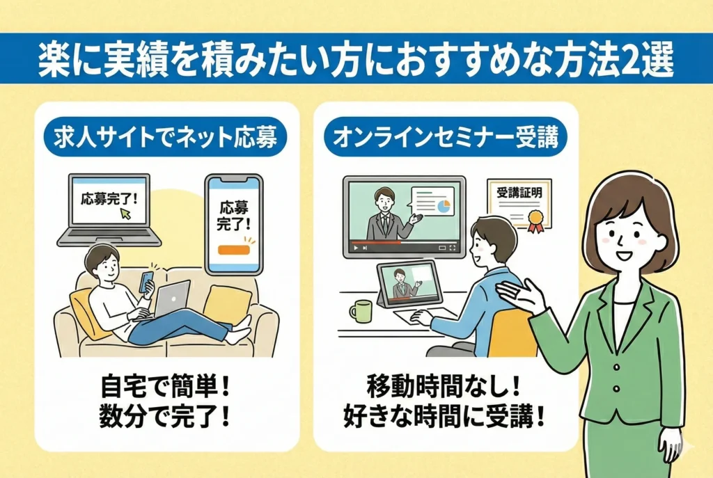 セミナー受講を含め、できるだけ楽に求職活動実績を積める方法を紹介します。